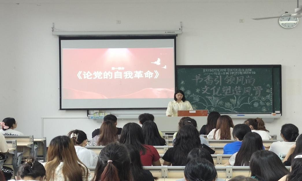 为学习先进的思想理论,不断提高思想道德素质,增强自身思想建设,重庆财经学院财富管理学院学生党支部于2023年6月6日中午在教学楼1317教室开展以“书香引领风尚,文化塑造风骨”为主题的习新思专题理论学习会。财富管理学院教师党支部副书记张欢老师、学生党支部书记赵诗琪老师、全体学生党员以及党员服务站工作人员参加本次会议。会议由教师党支部副书记张欢老师主持。