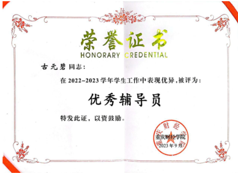古元碧,重庆财经学院财富管理学院专职辅导员,在三年的专职辅导员工作中,她坚持把育人作为工作的出发点,潜心育人,默默耕耘,用实际行动践行师者的大爱微光。