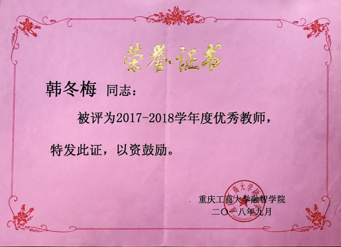 [1]优秀教师,2018;