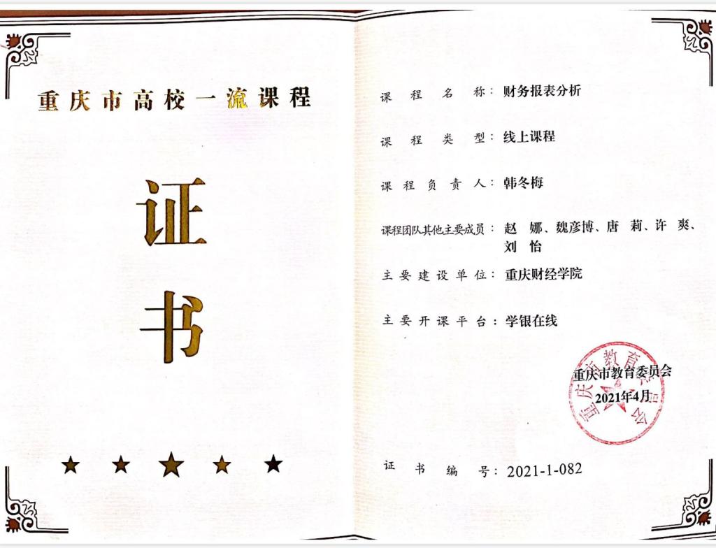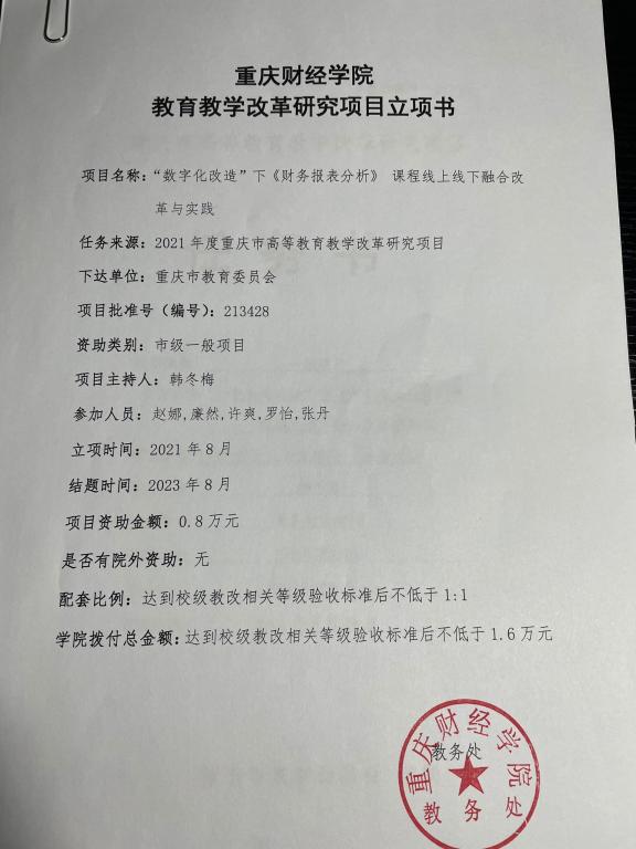 [4]教学改革研究一般项目:“数字化改造”下《财务报表分析》 课程线上线下融合改革与实践,2021,主持,6排2;