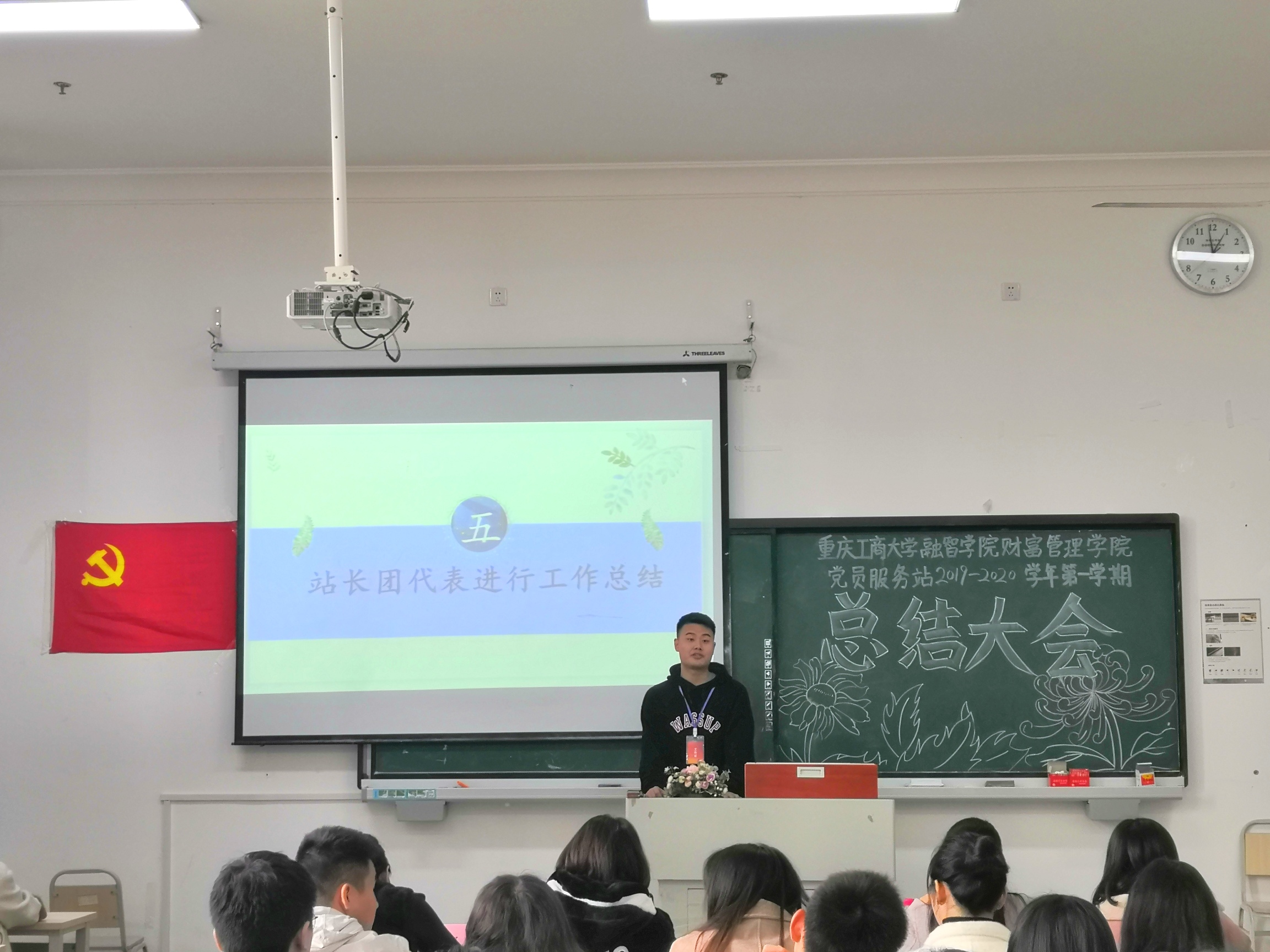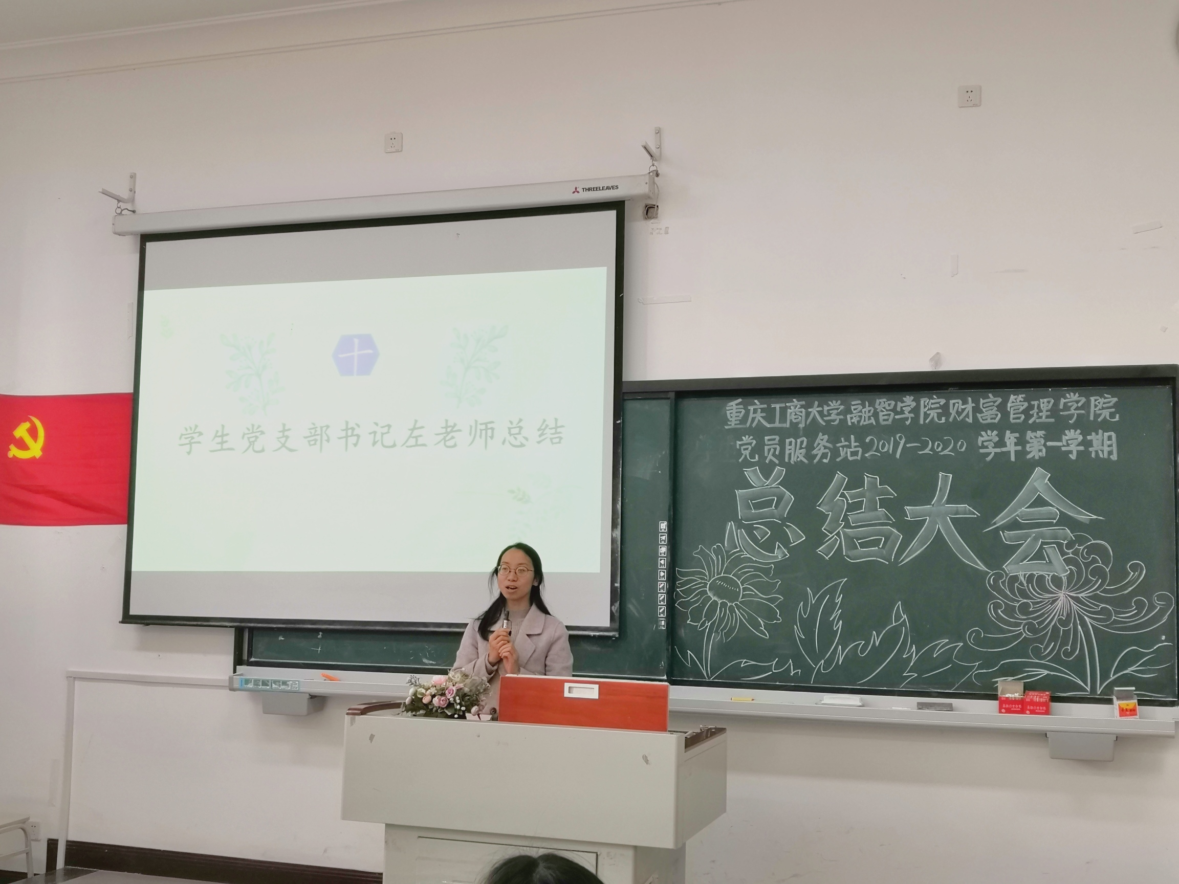 大会最后,左小容书记对本学期的工作进行了总结,并对党员服务站工作人员提出两点期望,一是要树立信心,以更高的标准要求自己,起好表率作用。二是加强同学间的学习和交流,在学习中珍惜锻炼自我、展现自我的机会。